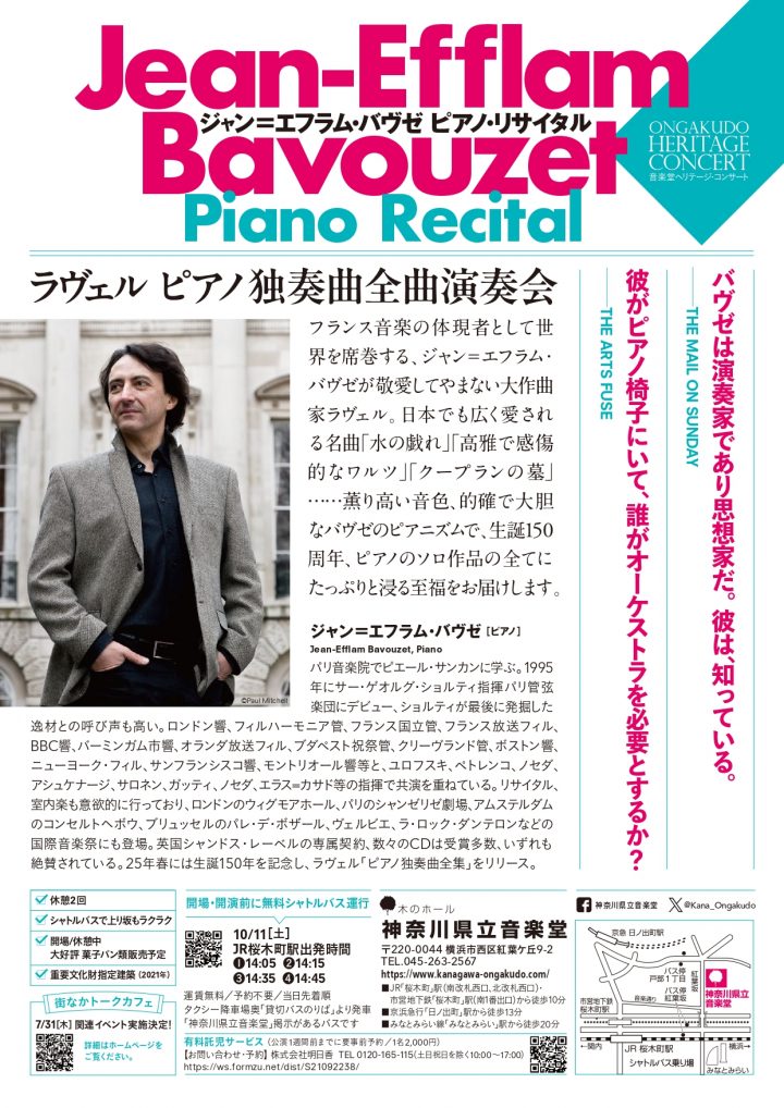 法国钢琴大师的完整独奏作品!这套特别曲目在纪念之年进行了全球巡演,在威格莫尔音乐厅的演出门票全部售罄,并在韦尔比耶音乐节上吸引了众多眼光独到的观众。横滨是东京都内唯一可以欣赏到这套作品的地方。