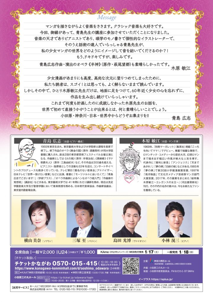 | 演目 | ●木原敏江&青島広志 ~木原敏江の源泉~ |