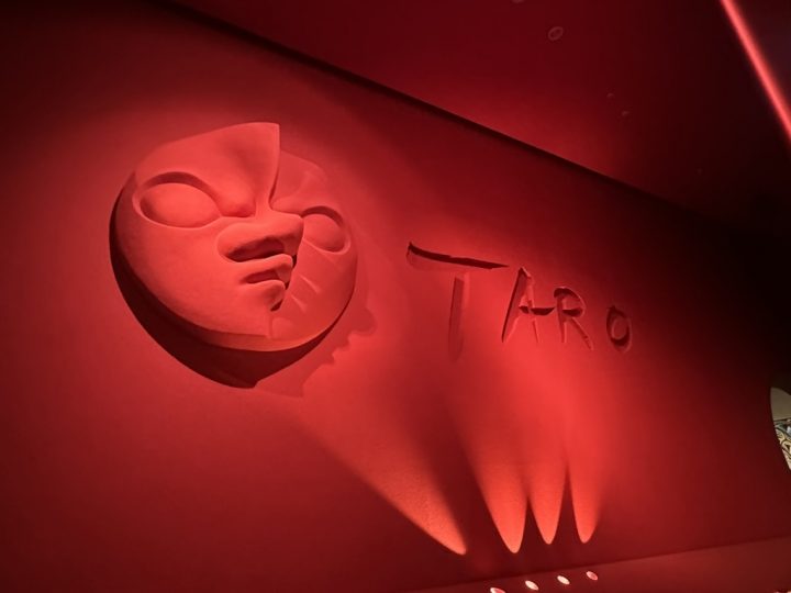 真っ赤な壁に「TARO」の文字と太陽の塔を思わせる顔が浮かび上がる常設展示室入口から「TAROワールド」は始まる。そして、展示室の「はじめに」に書かれた太郎自身の言葉「この人生に、自分という宿命を設定し、それに賭けて嬉々として遊ぶ。・・・・・・それこそ<生きる>に値する。ただし、その遊びは全存在をかけて、血を流しながら遊ばなければならない。」出典:岡本太郎「芸術と遊び――危機の接点」『原色の呪文』(1968年、文芸春秋)が、そこから続くTAROワールドに入り込む覚悟のようなものを覚えさせる。